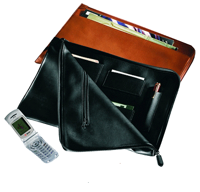 This top-grain Napa leather convertible ziparound portfolio has a fully-gusseted file pocket, as well as three additional file pockets (one of which is zippered), pockets for your PDA and cell phone, and three pen loops. The 8 1/2" x 11" pad holder is reversible for left-handed or right-handed use. It can also accommodate an A4 pad. Dimensions: 13 1/2" x 10 3/8" x 3/4". Available in black or British tan leather.
